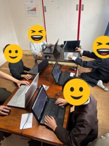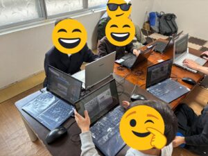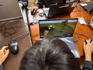 利用者さんが楽しみにしているプログラミング教室です。お友だち同士でワールドを繋げてマイクラ建築に集中!