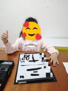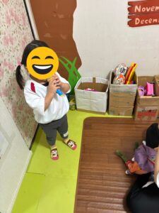 お昼前から幼稚部のお友だちが利用です。お母さんが作ってくれたお弁当をパクパク食べ完食しました。五十音カードで指文字のお勉強。マイクを片手に〇〇の歌を聴かせくれました。