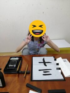 女の子チームは隣接する公園でタッチ鬼ごっこで遊びました。午後からは、習字教室に利用者さん個別に先生から教わりました。