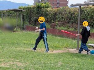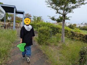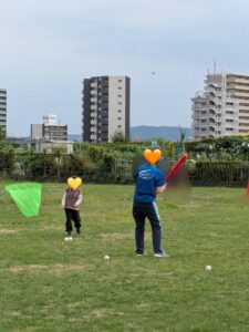 午前中は放出下水処理場へ行き、芝生広場で野球や虫取りをして遊びました!