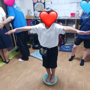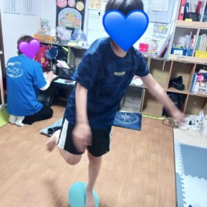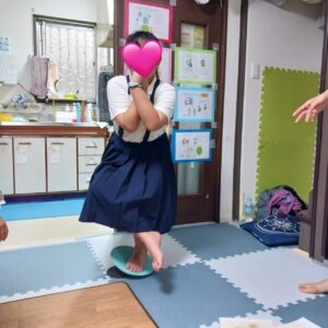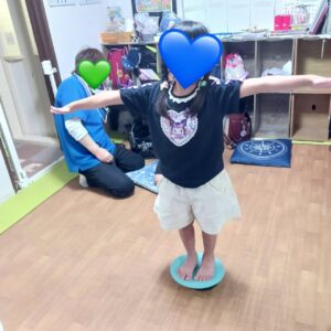 小さなバランスボードに立ち上手にバランスを取っていました。