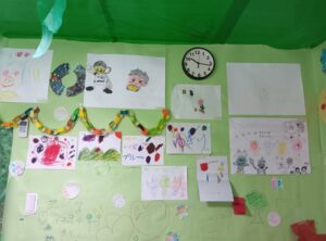 本日は作品展!今回は2日間にかけて行い、1年間の子どもたちの作品や写真を保護者様に見て頂きました。