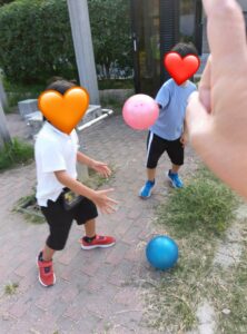 宿題後は公園へ。少し涼しくなり、気持ちいい風が吹く中、元気いっぱいボール当て鬼ごっこです!