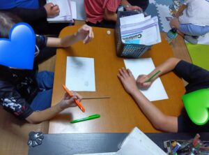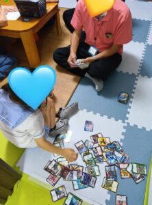 〇〇ちゃんは算数の問題作り、△△くんは支援員とカード遊びです。