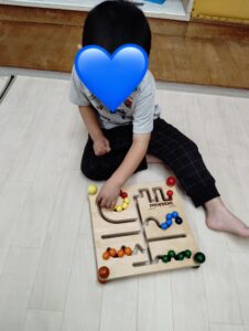 2025年 10/26(日)長居スポーツセンター 本日は午前中、長居スポーツセンター行きました。 〇〇くんはトランポリンやボール遊び、ピアノやパズルなどたくさん遊びました。 昼食後はボール入れ!箱に遠くから上手に入れました✨️ガッツポーズ!