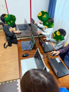 今日は、みんなが大好きなパソコン教室の日。マイクラの本を持参で「ボクは地下をつくる!」「きのこの上に家を作る!」「屋根がいるよ!」などなどお友達みんなが協力をして世界に一つだけの家を作っています。