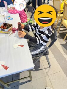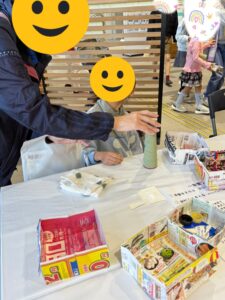 2025年11月8日(土曜日) 区民まつり! 今日は城東区民祭りに行きました。 飾りクリスマスツリーとぶんぶんごまの工作を体験しました。 鉄道コーナーでは、ホームの非常ボタンの体験や輪投げゲーム等を楽しみました。