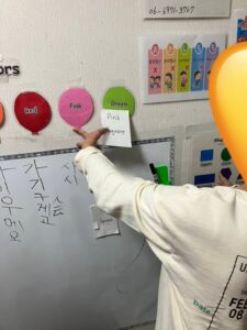 2つのお題、例→Blue(青)、Circle(丸)だとすると青色の丸の形のもの探しになります。