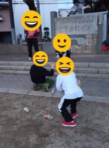 2025/12/23(火)野球教室&好きな遊び! 今日は、男子が楽しみにしている野球教室です。グローブ🥊バット🏏を担いで出発! 高学年の女の子はクリスマスのぬり絵を集中して書きました。 とても上手に塗っていました。 あとから公園へ行ったお友だちは、ペットボトルフリップに何度も挑戦していました。