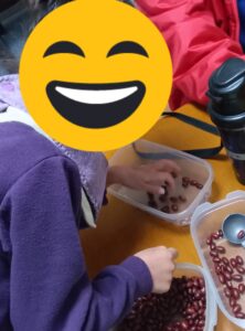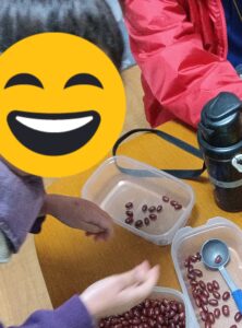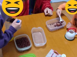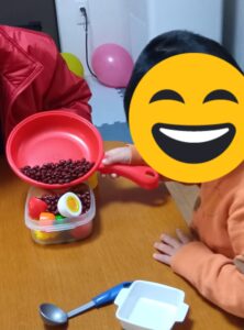 最後はままごと遊び、野菜の豆和え!!出来上がりました。