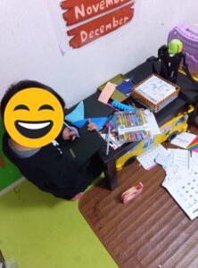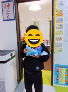 スタッフが古いカレンダーだけを渡したところ、〇〇君はアイデアが湧き、紙芝居を作りました。
