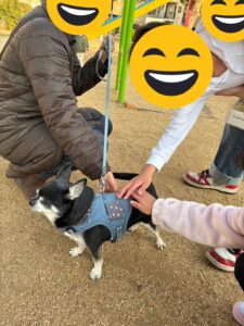 近所の方がワンちゃんを触らせて、みんな喜びました。