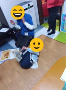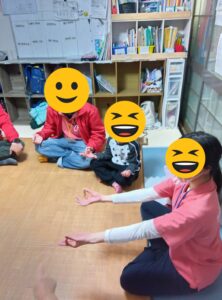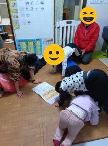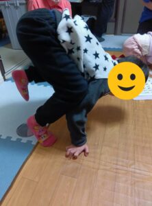 部屋の中では、ヨガ遊びを通して身体を思い存分動かして楽しんでいます。
