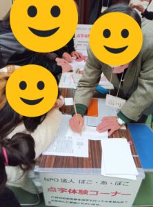 点字体験では名刺に名前を作ってみました。