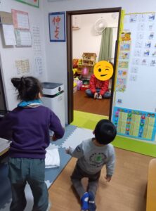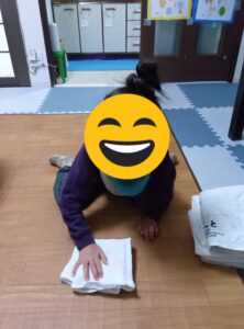 タオルたたみ!ペッタン、パッタン たためたよ。