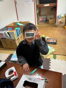 ボクは、製作作りが大好きで今日は、竹とんぼとメガネを作ったよ!