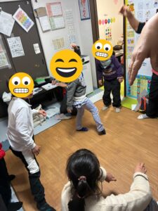 ヨガ遊び!みんなで動物のまねつこをしました。何の動物か、わかるかな?