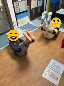 ヨガ遊びではガイドブックを見ながら様々なポースに挑戦しました。