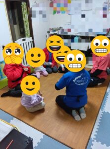 今日は、幼稚部・低学年のお友達が、ヨガ遊びに参加しました。あぐら座で挨拶をして、呼吸法を学びました。