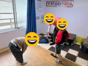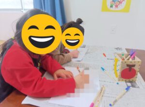 今日から英語教室を再開しました。「what’s your name?」をテーマに、英語の名前を紹介し、さまざまな活動の中でその名前を使いました。