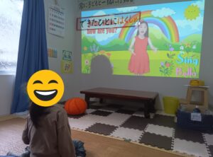 英語の歌(Hokey Pokey)を歌いながら身体を動かしたりしました。