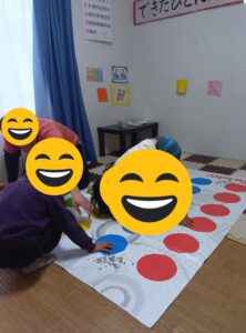 ツイスターも遊びました。今度は色を英語で言いまして。