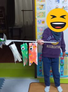 2026/4/12(日) 鯉のぼりを作ったよ! もう直ぐ5月だよ~ん!子どもの日がやってくるから元気にすくすくと成長するようにと鯉のぼりの製作をしました。前回は手伝ったり、一緒に作ったりしましたが、今回は遣り方を言葉で伝えるだけでサッサと作り上げていく!成長を感じる1日でした。
