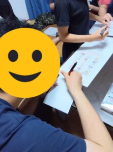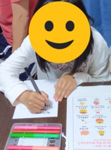 用紙にお気に入りの食べ物の英単語を書き、絵を描きました。