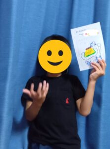 英語教室のテーマは「My favorite food(お気に入りの食べ物)」です。