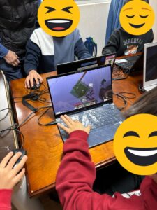午後からプログラミング教室です。パソコンを立ち上げて、ワールドを繋げマイクラを楽しみました。