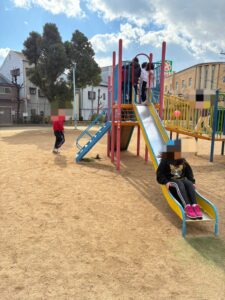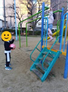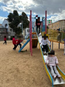 公園では寒いので鬼ごっこをしてみんなずっと走り回っていました。