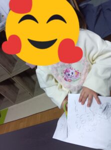 今日は、幼稚部のお友だちが昼前に利用となりました。お弁当の中に入っていたブロッコリー🥦の絵を描いて上手にハサミを使ってきりました。