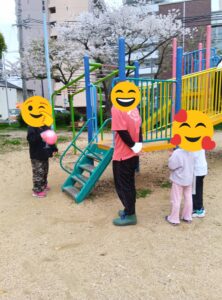 朝から少しずつ雲がなくなり青空が見えてきました。利用者さん達は、早く外へ行きたいと ソワソワ!公園では男の子はサッカーと女の子は滑り台に別れて遊びました。